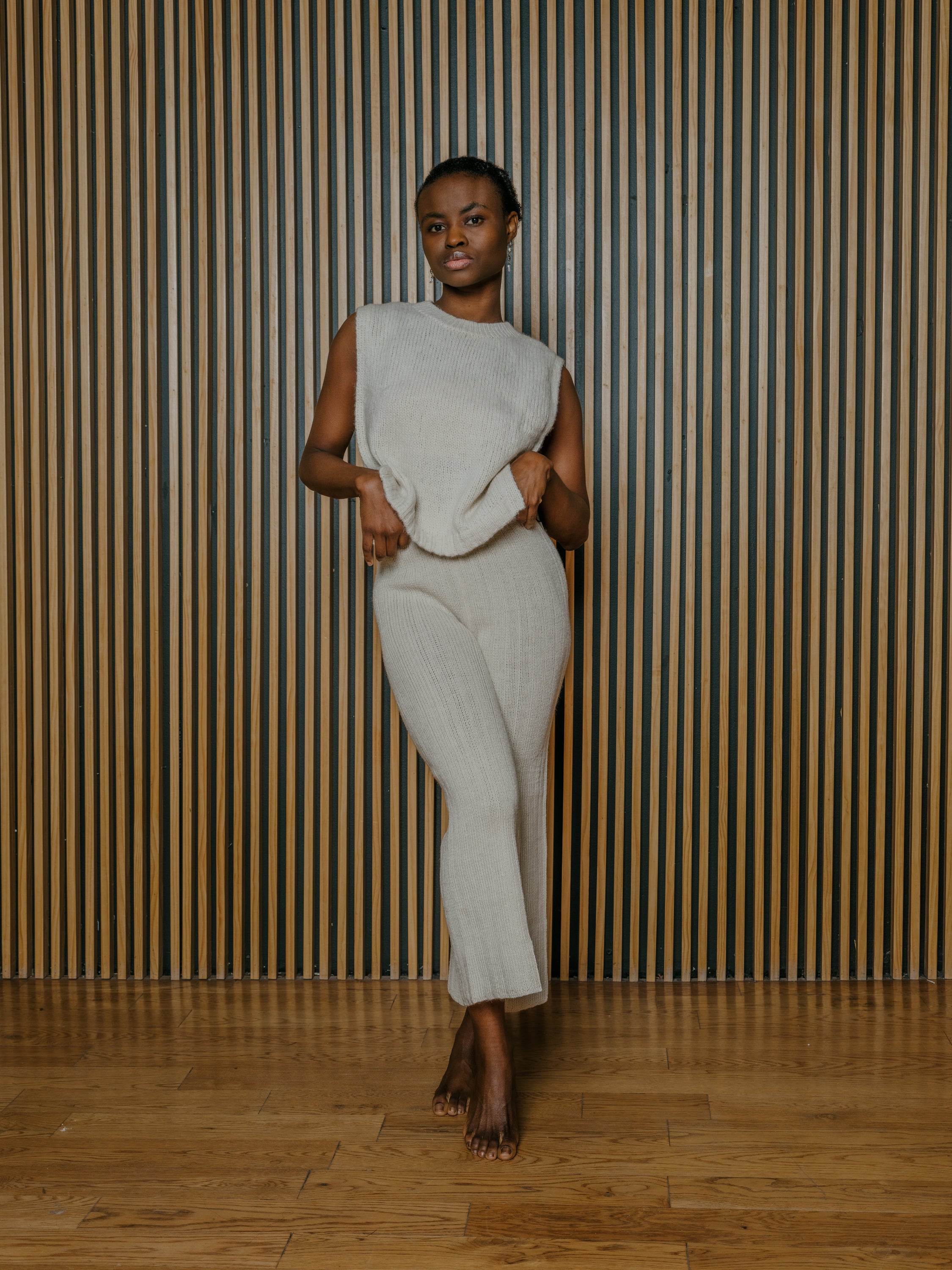 The Munasiri Vest is hand-knitted from soft llama fiber, bringing together natural warmth and artisanal texture. With its relaxed fit and open front, it layers effortlessly, making it a timeless piece for every season.
