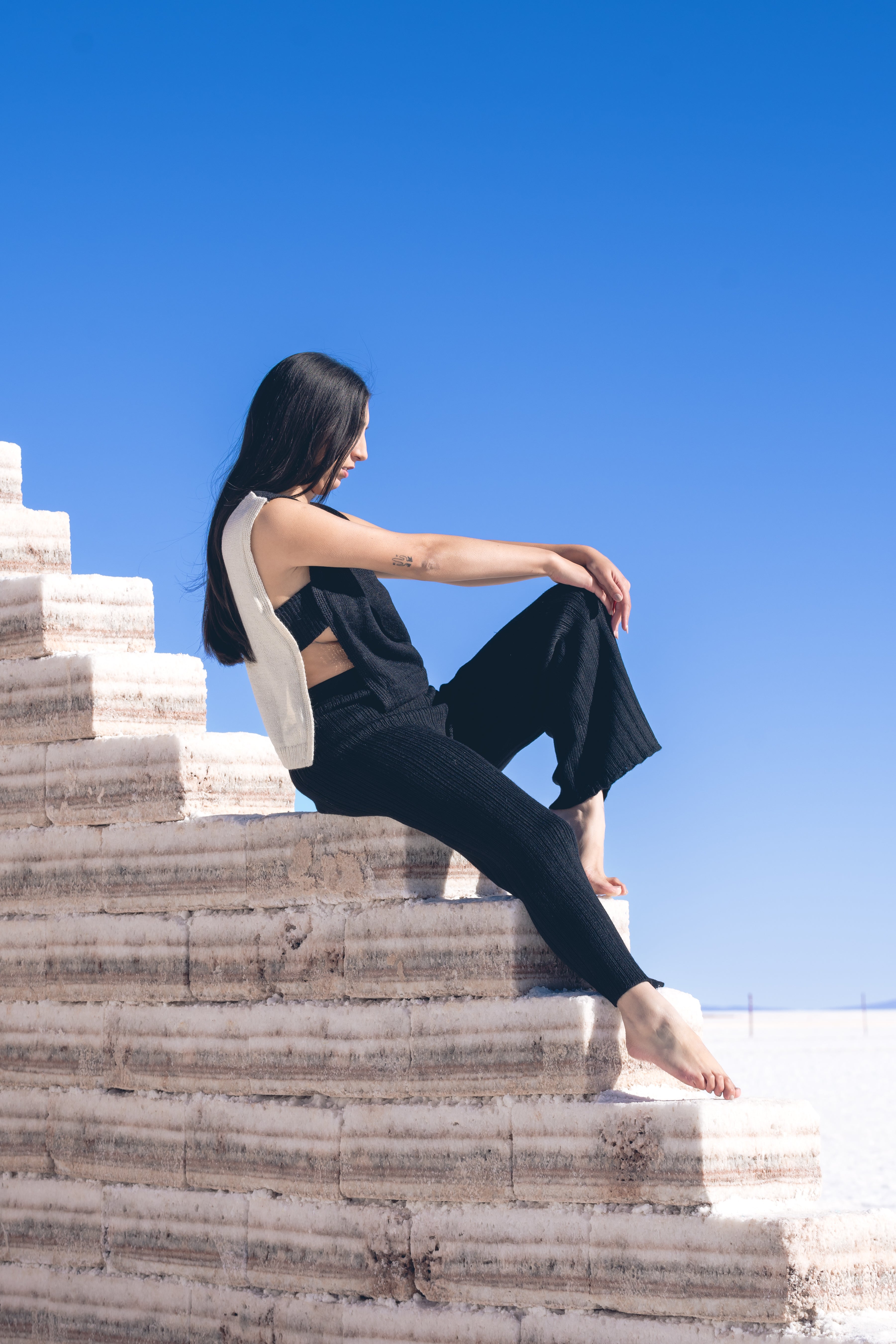 The Mullu Cardigan is crafted from soft alpaca with a clever reversible design. Featuring a V-neckline that can be worn in the front or the back, it also offers two distinct tones—one on each side—making it a versatile layer you can style in multiple ways. Textured, timeless, and refined, it’s a true wardrobe chameleon.